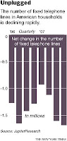 "The young, hip, cool people have cellphones only, and that is bad news for traditional phone providers. In a survey of Internet users, JupiterResearch found that 12 percent “do not subscribe to fixed voice service, and nearly two-thirds of them are ages 18 to 34.”"But the future looks worse